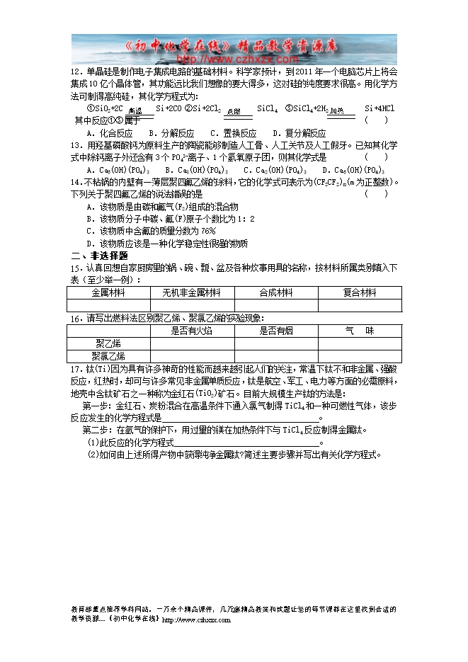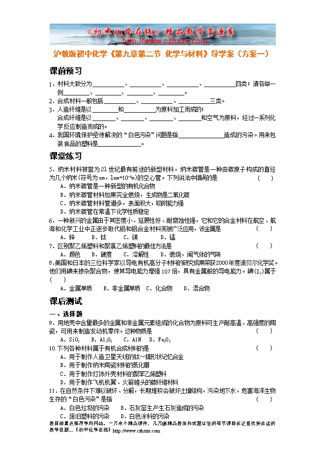 沪教版初中化学《第九章第二节 新型材料的研制》导学案(方案一)