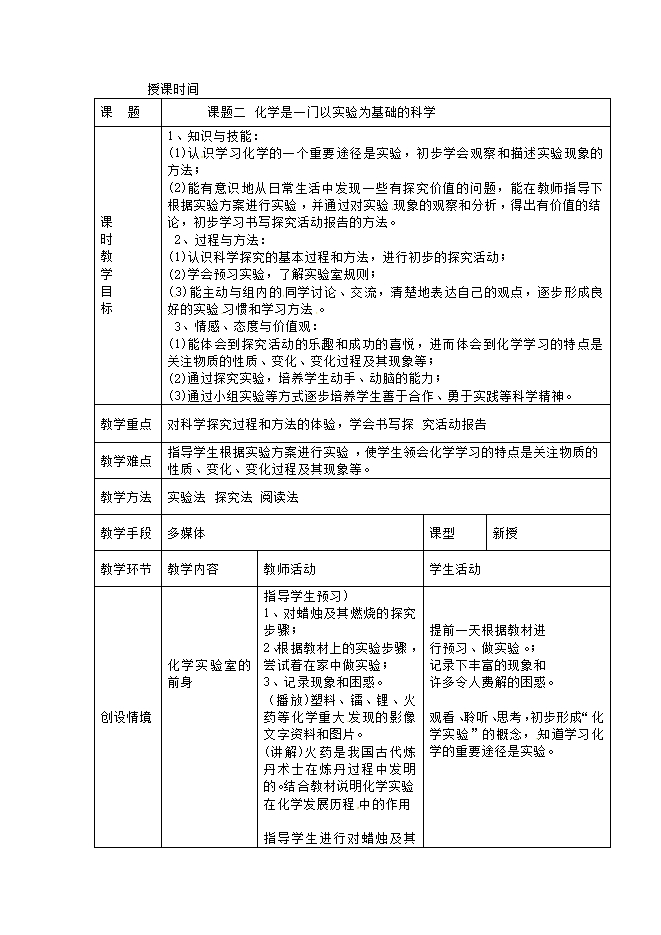 【内容简介】天津市宝坻区牛道口初级中学人教版九年级化学上册《1.2化学是一门以实验为基础的科学》教案
