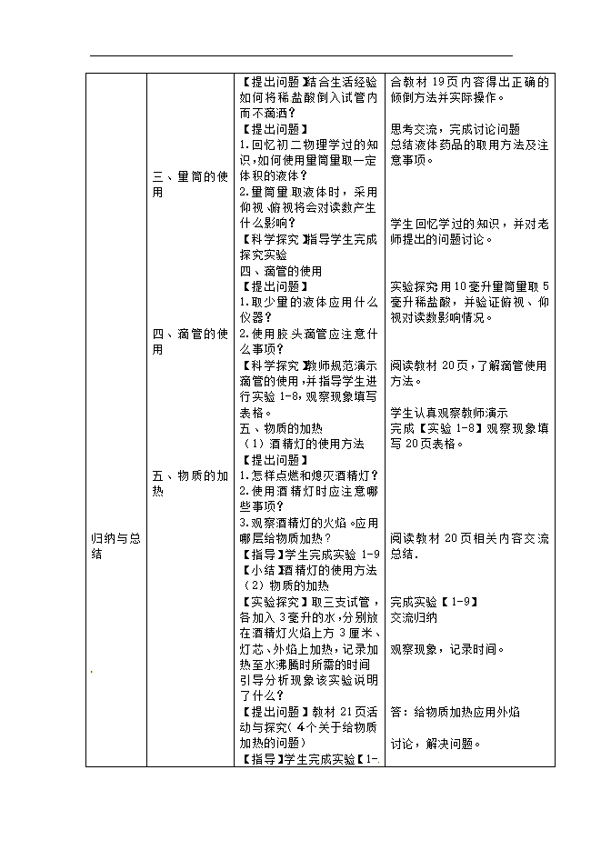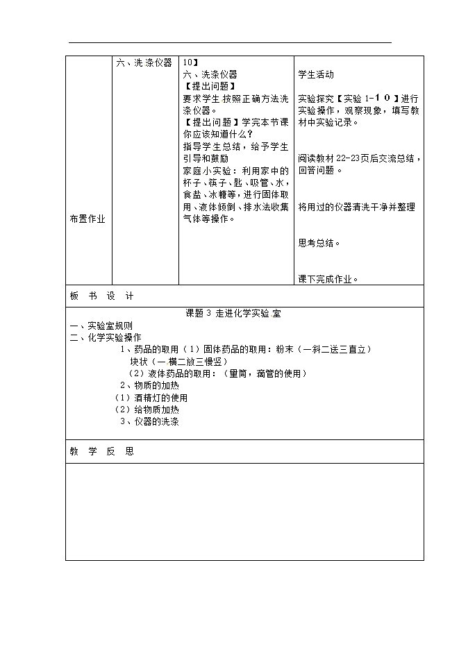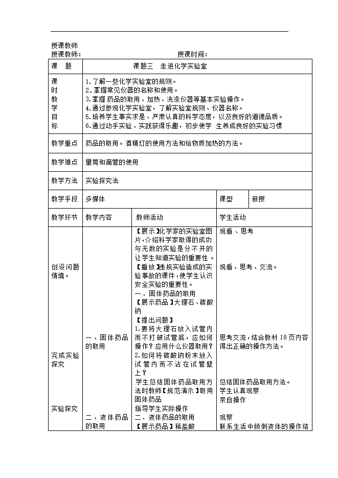 【内容简介】天津市宝坻区牛道口初级中学人教版九年级化学上册《1.3走进化学实验室》教案