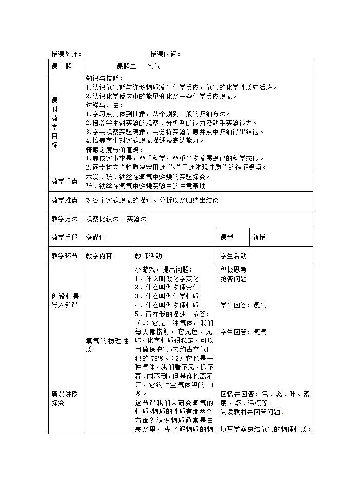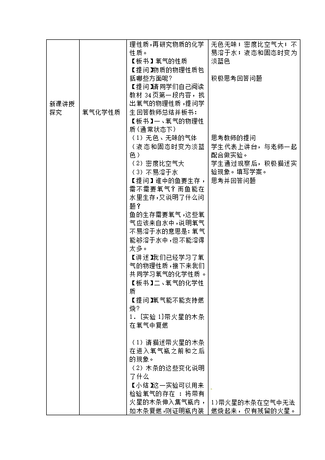天津市宝坻区牛道口初级中学人教版九年级化学上册《2.2 氧气》教案