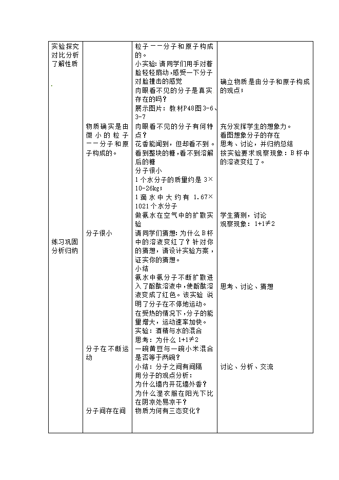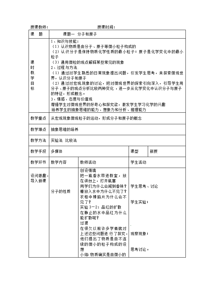 【内容简介】天津市宝坻区牛道口初级中学人教版九年级化学上册《3.1分子和原子》教案