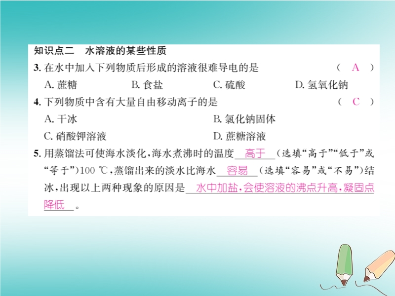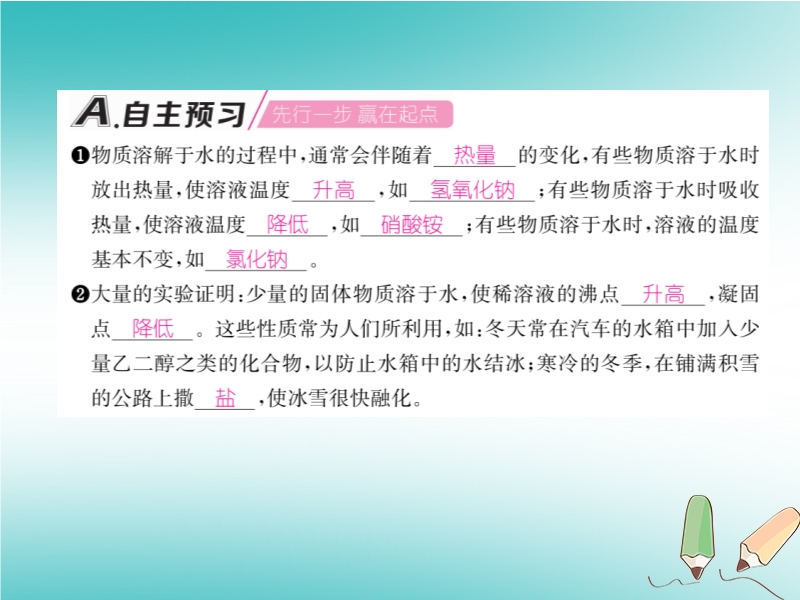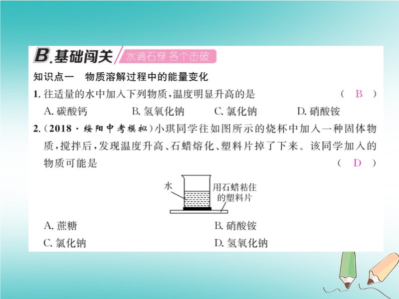 【内容简介】2018秋沪教版九年级化学下册《第6章第1节 物质在水中的分散(第2课时)》习题课件