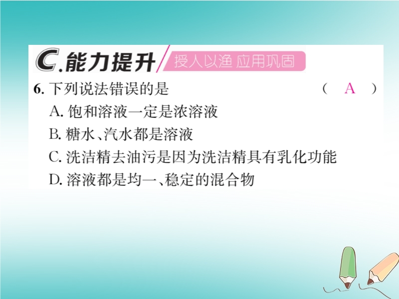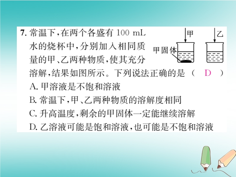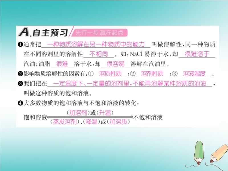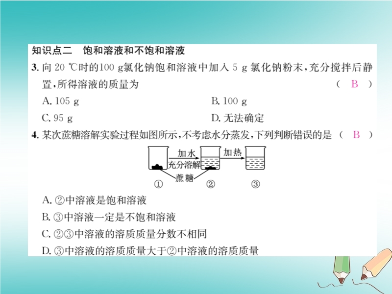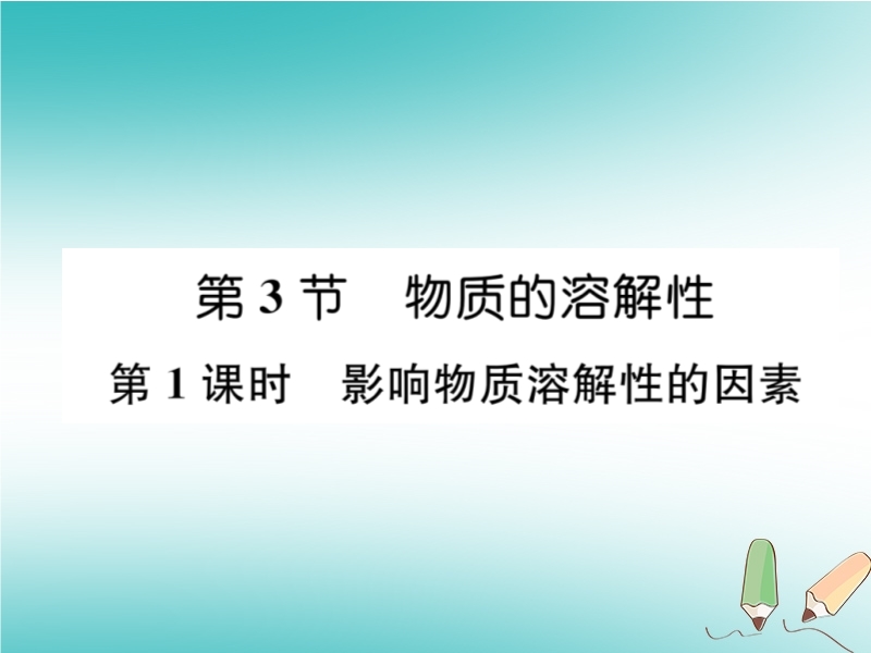 2018秋沪教版九年级化学下册《第6章第3节 物质的溶解性(第1课时)》习题课件