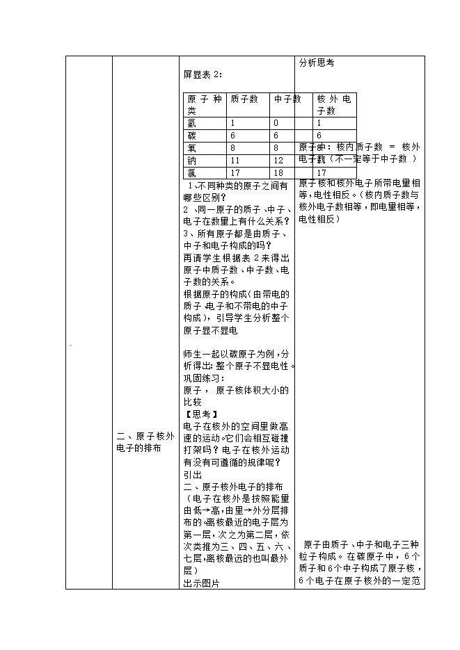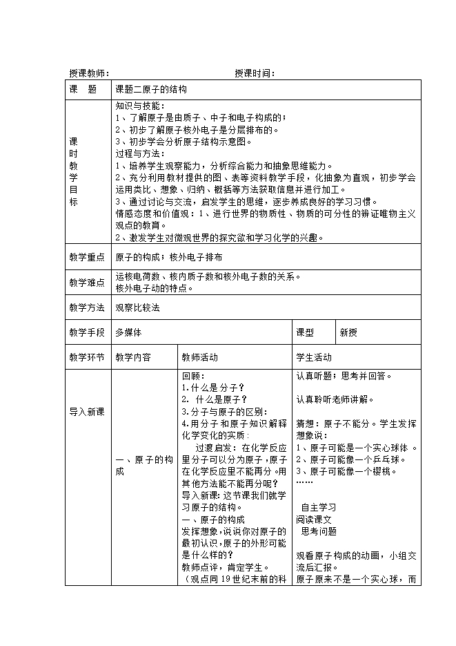 【内容简介】天津市宝坻区牛道口初级中学人教版九年级化学上册《3.2原子的结构》教案