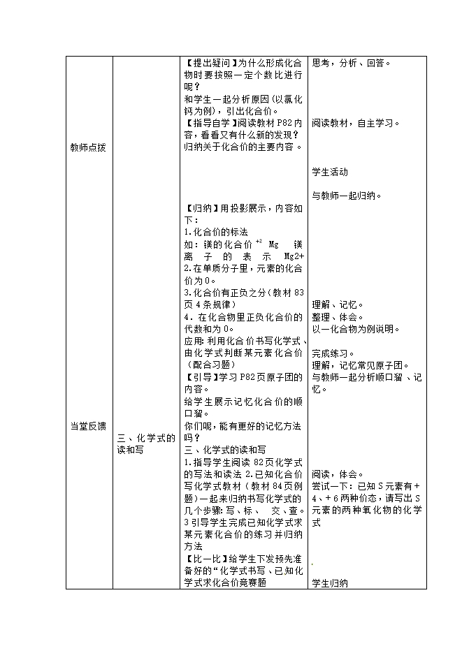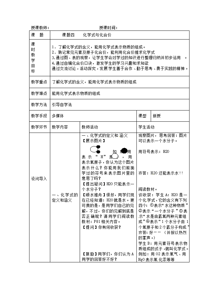 【内容简介】天津市宝坻区牛道口初级中学人教版九年级化学上册《4.4化学式与化合价》教案