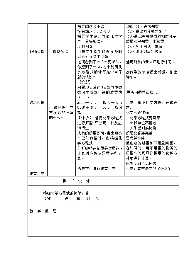 【内容简介】天津市宝坻区牛道口初级中学人教版九年级化学上册《5.3利用化学方程式的简单计算》教案
