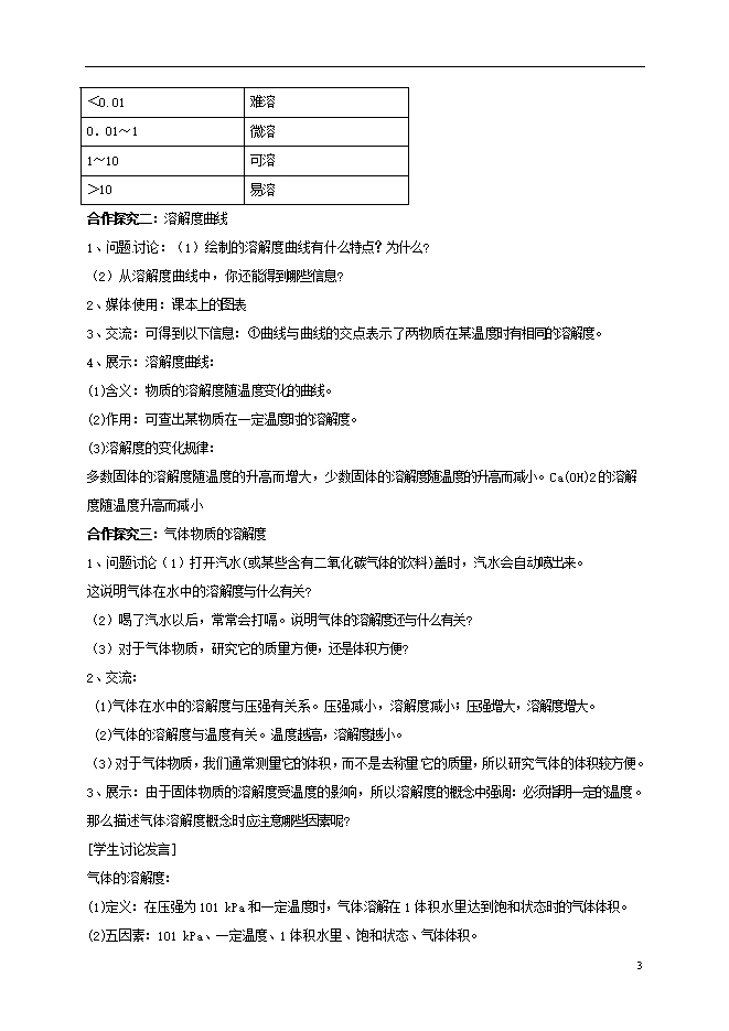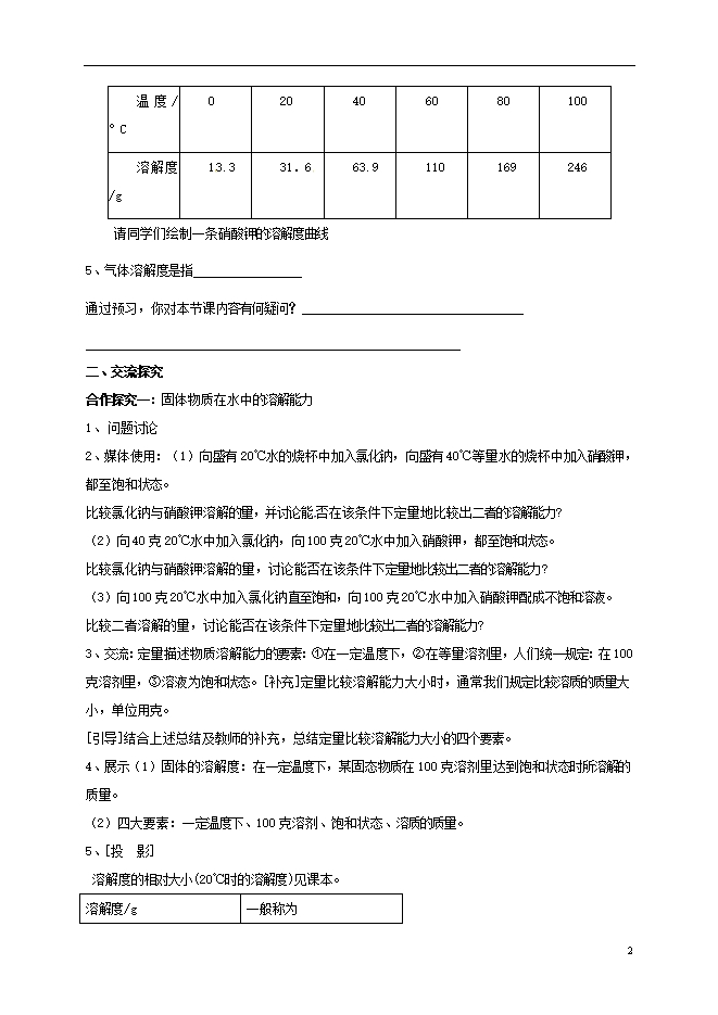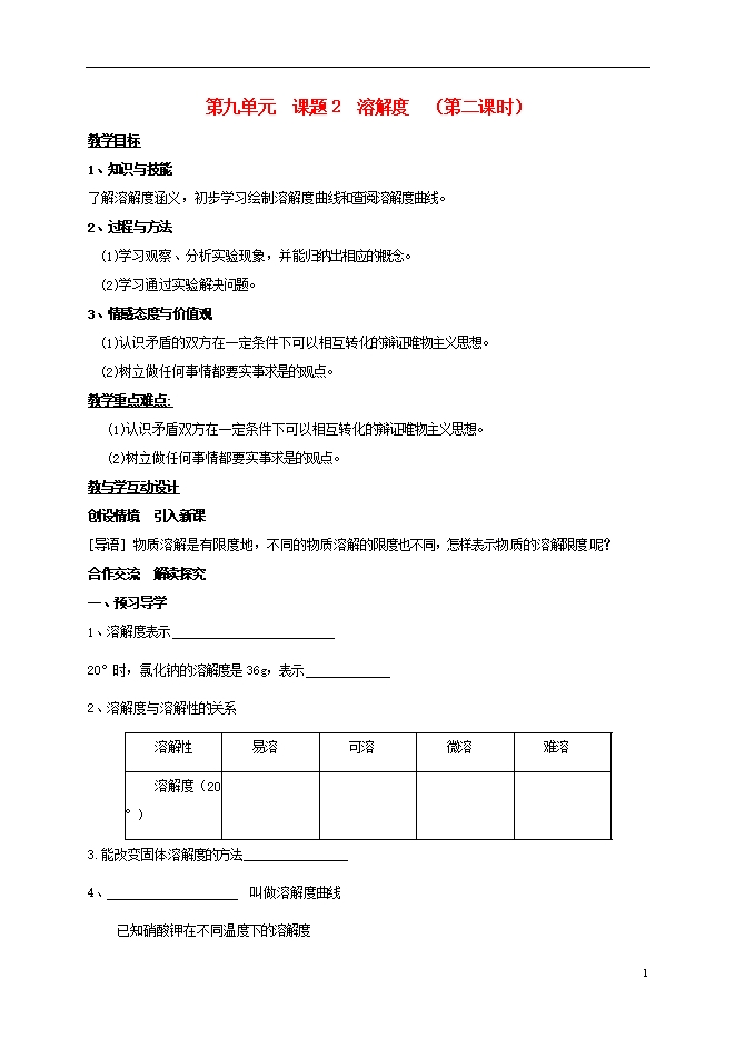 【内容简介】湖南省益阳市资阳区人教版九年级化学下册《第九单元课题2 溶解度(第2课时)》教案