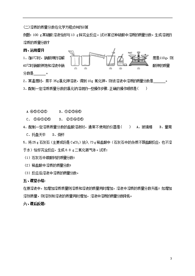 湖南省益阳市资阳区人教版九年级化学下册《第九单元课题3 溶液的浓度(第2课时)》教案
