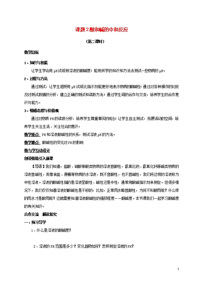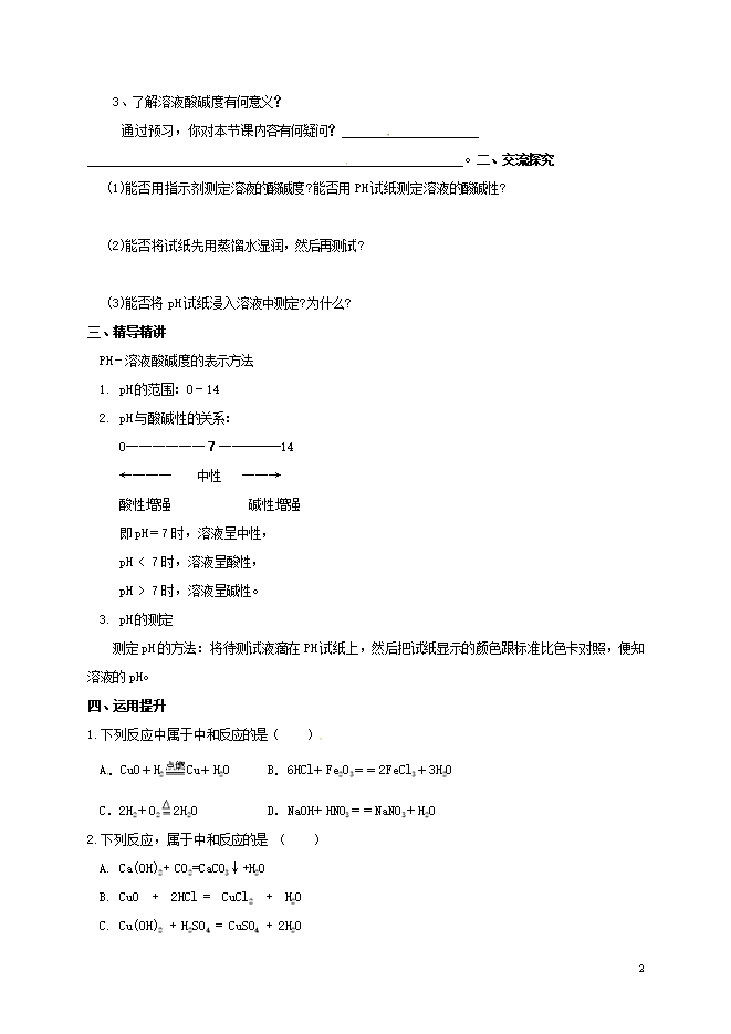 【内容简介】湖南省益阳市资阳区人教版九年级化学下册《第十单元课题2 酸和碱的中和反应(第2课时)》教案