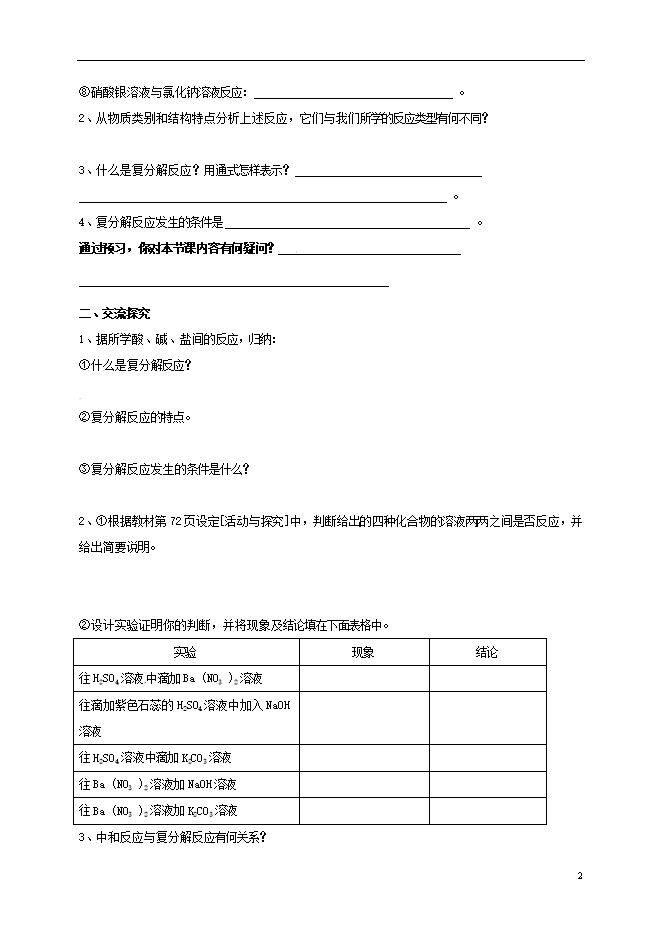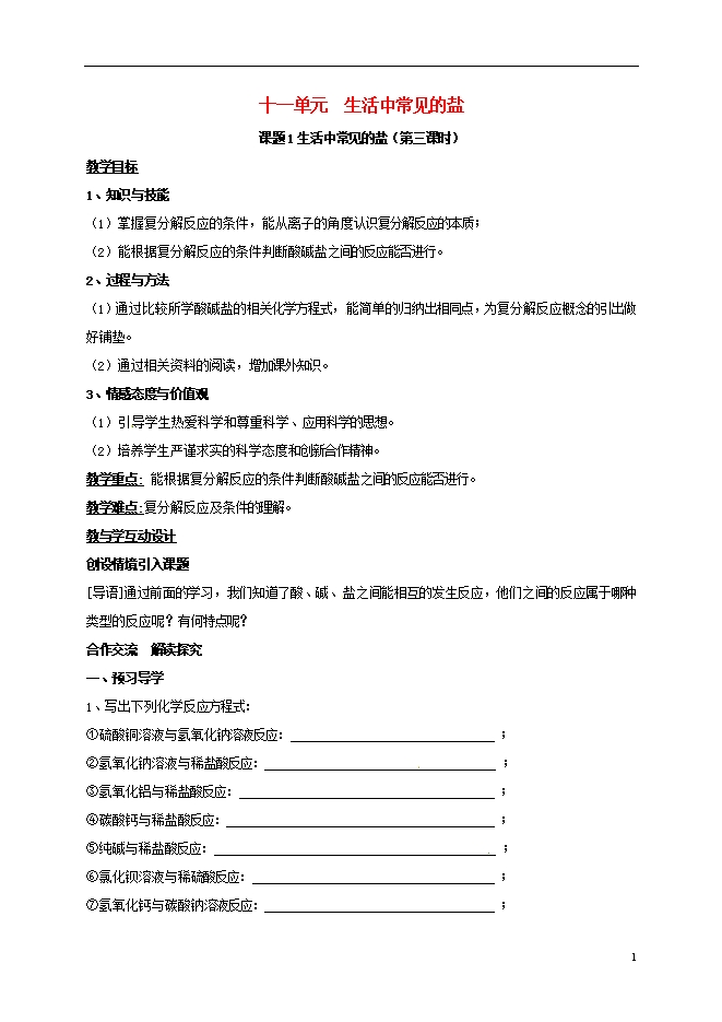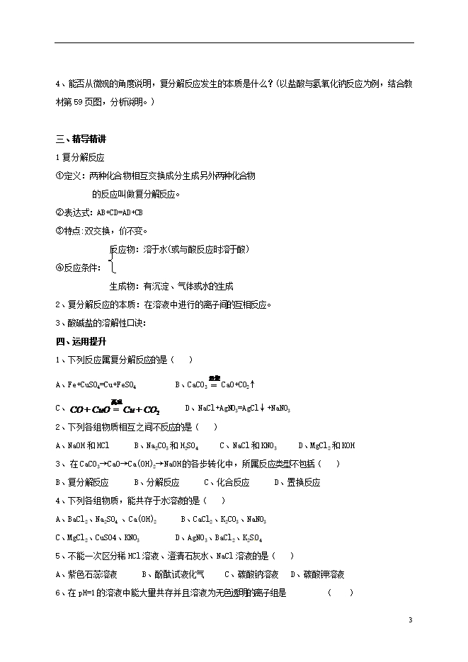 【内容简介】湖南省益阳市资阳区人教版九年级化学下册《第十一单元课题1生活中常见的盐(第3课时)》教案