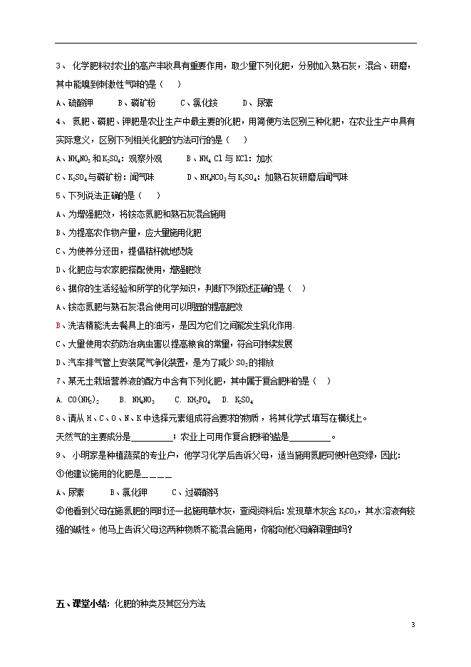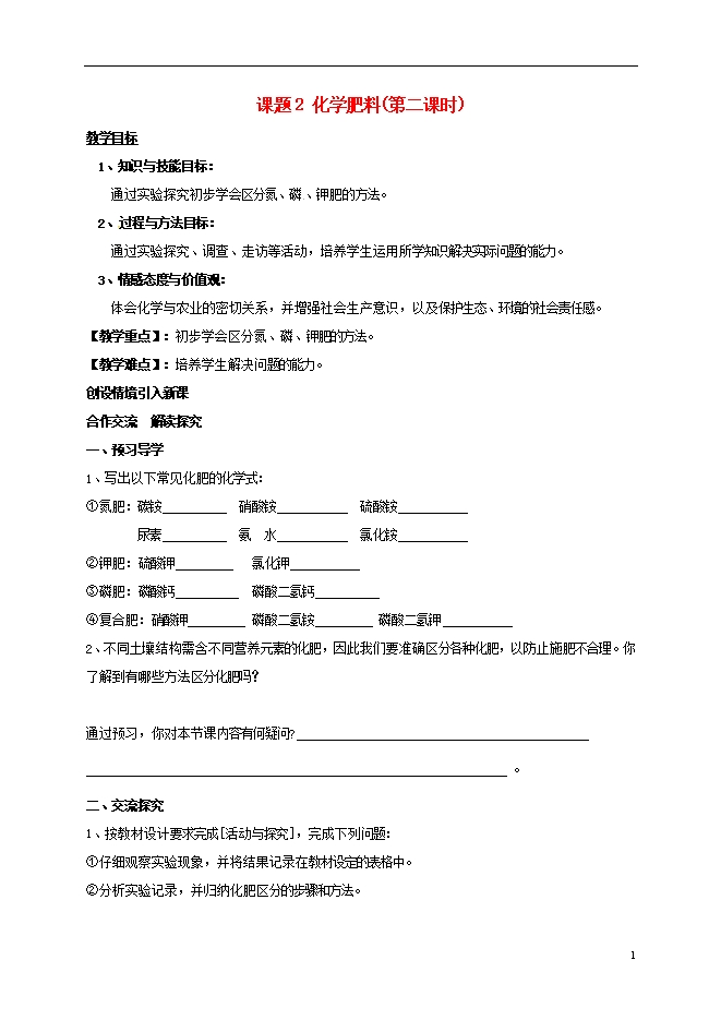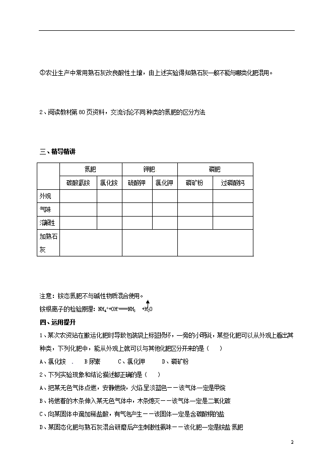 【内容简介】湖南省益阳市资阳区人教版九年级化学下册《第十一单元课题2化学肥料(第2课时)》教案