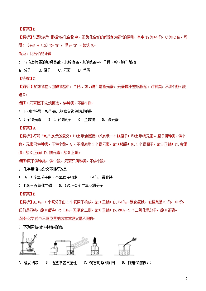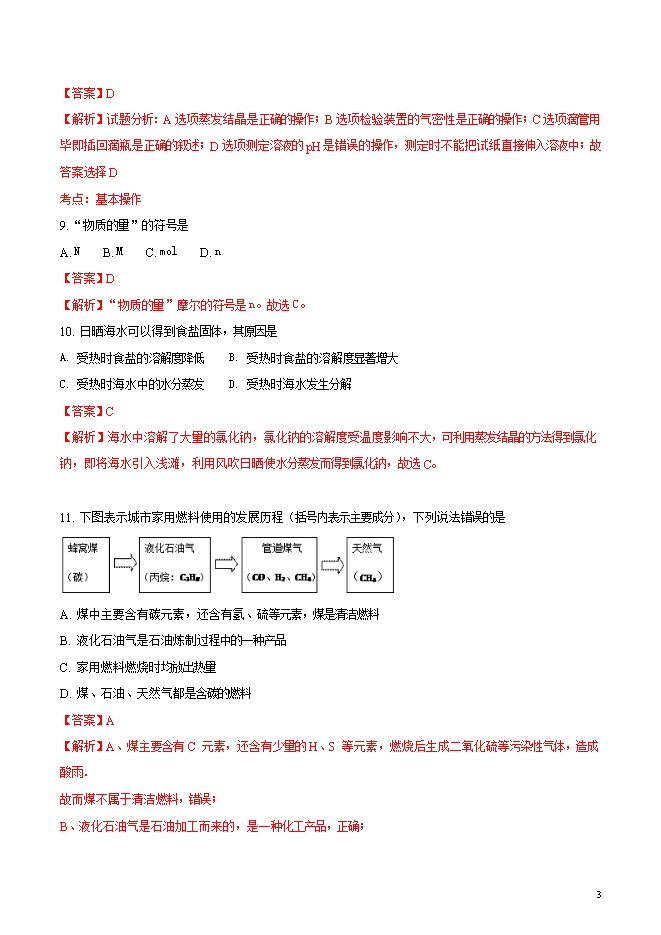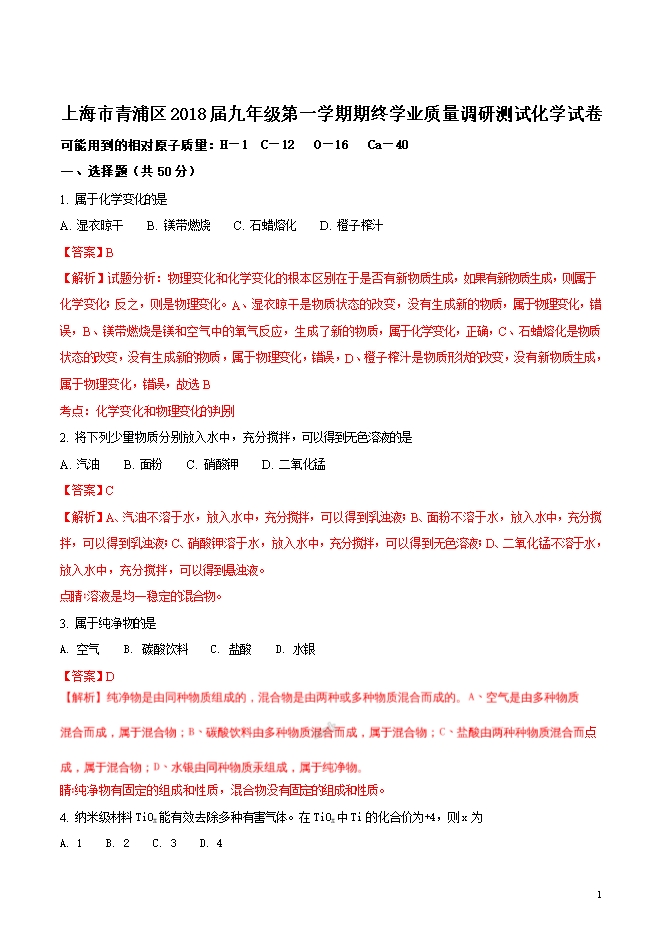 精品解析:上海市青浦区2018届九年级第一学期期终学业质量调研测试化学试卷(word版含答案解析)