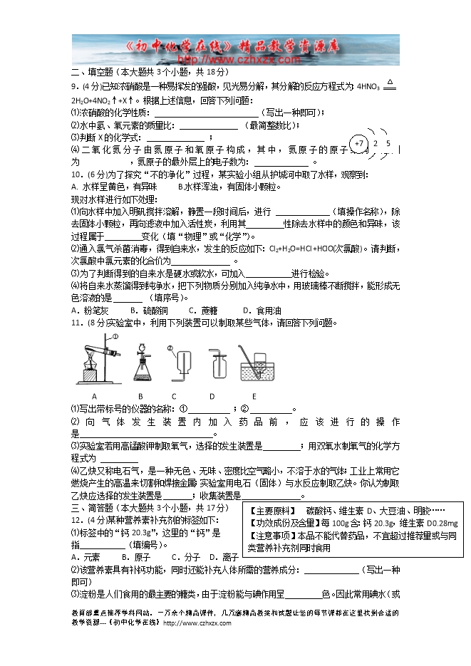 - 下一份试卷:2009年德州市初中毕业考试化学试题及答案