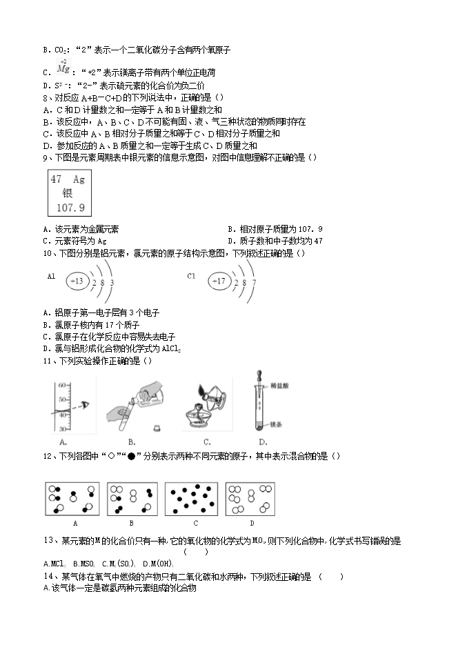 安徽省青阳县丁桥初级中学2018届第一学期期末模拟化学试题(word版无答案)