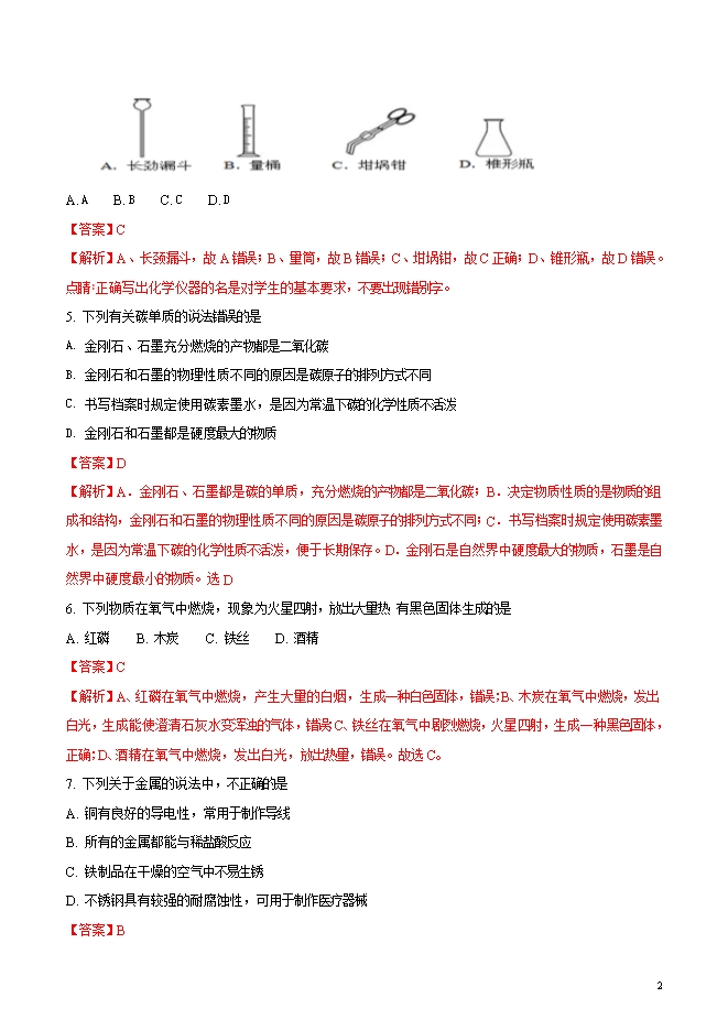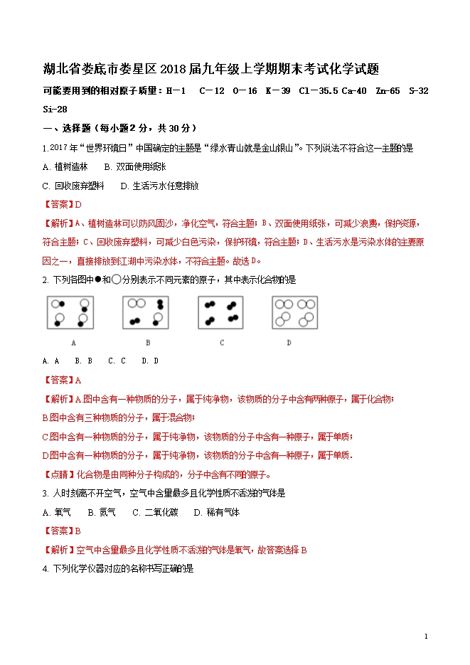 精品解析:湖北省娄底市娄星区2018届九年级上学期期末考试化学试题(word版含答案解析)
