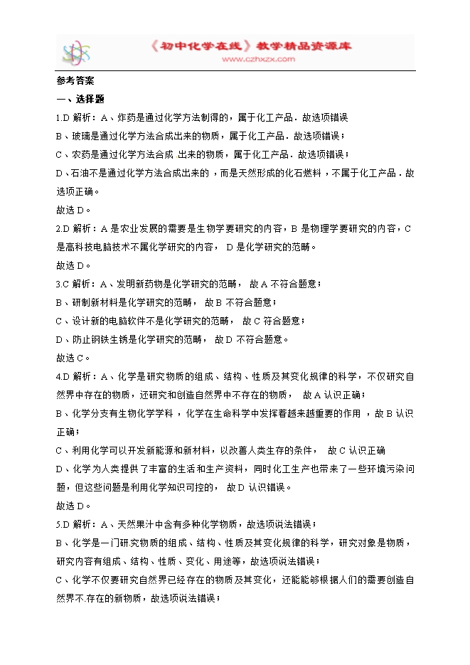 【内容简介】科粤版九年级化学上册《1.1身边的化学》预习检测(word版含解析)