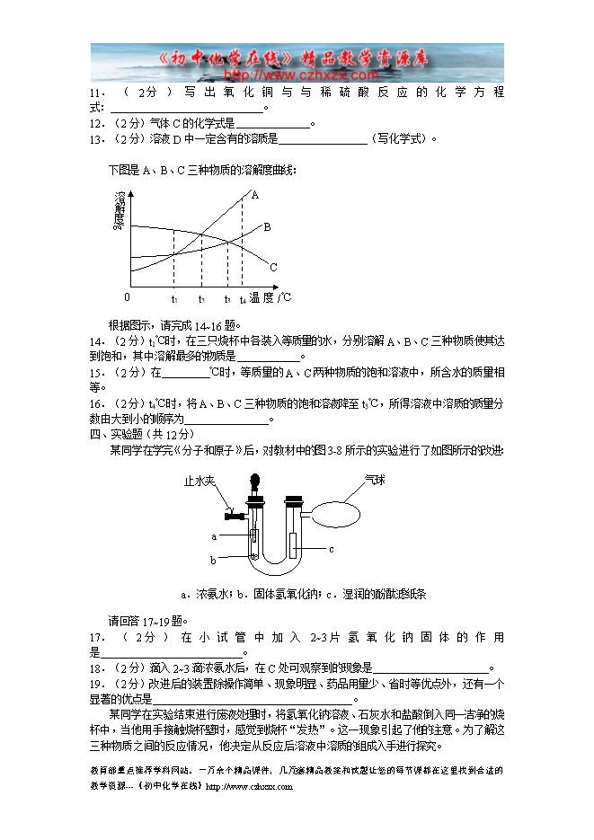 - 上一份试卷:2009年德州市初中毕业考试化学试题及答案