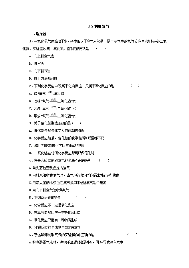 【内容简介】科粤版九年级化学上册《3.2制取氧气》同步练习(word版含答案)