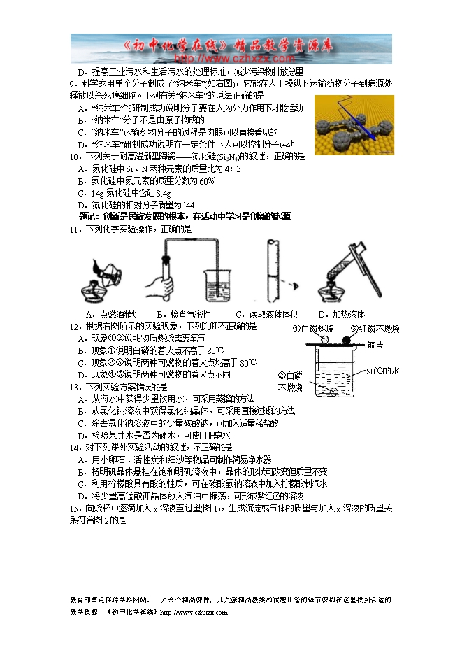 2009年湖北襄樊市初中毕业生学业考试化学试题及答案