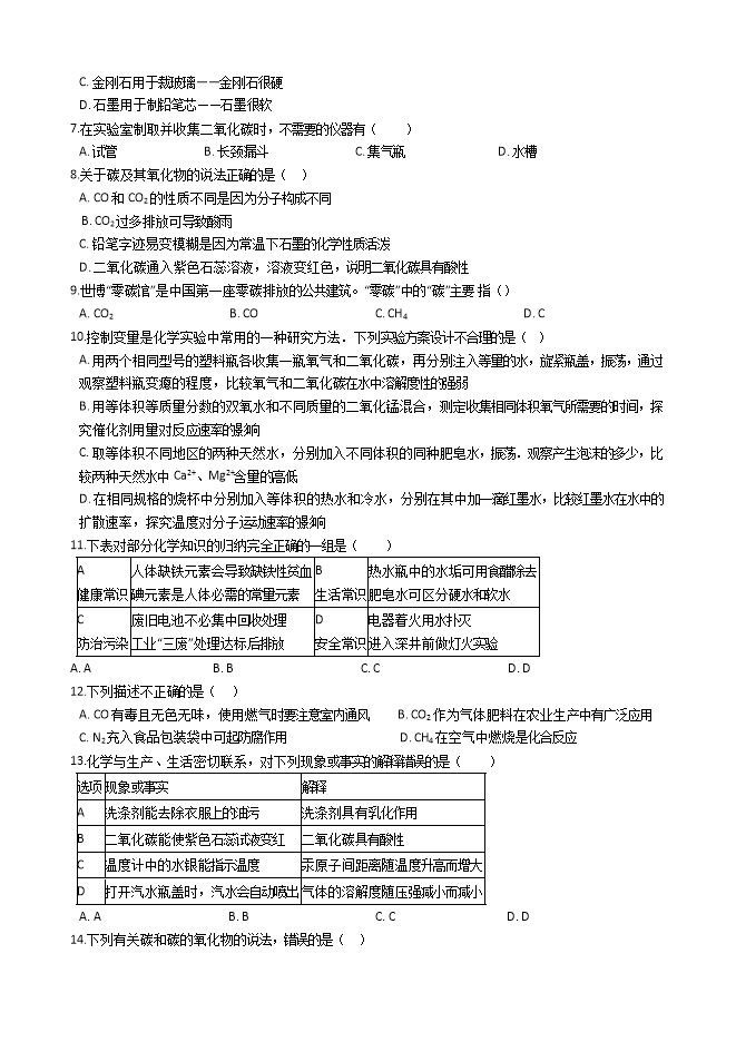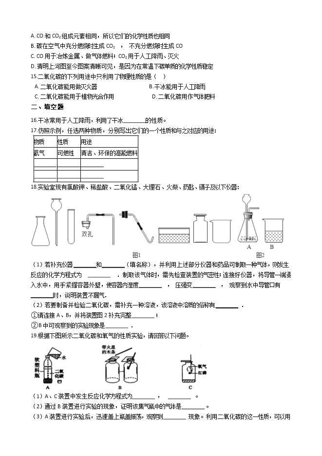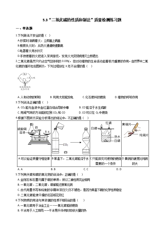 【内容简介】科粤版九年级化学上册《5.3二氧化碳的性质和制法》质量检测练习题(word版无答案)