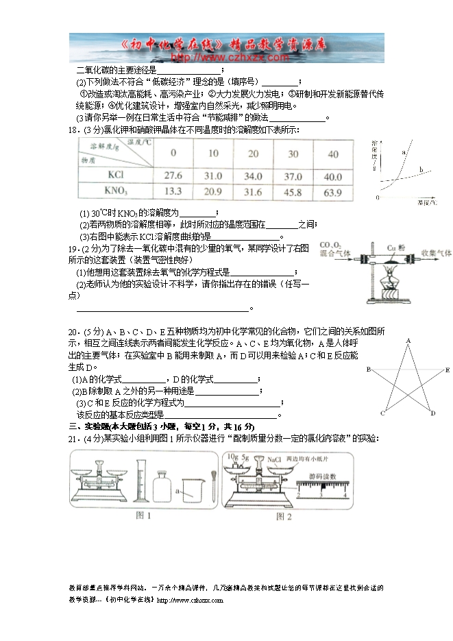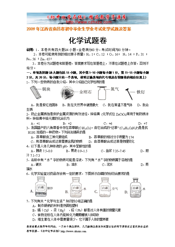 2009年江西省南昌市初中毕业生学业考试化学试题及答案