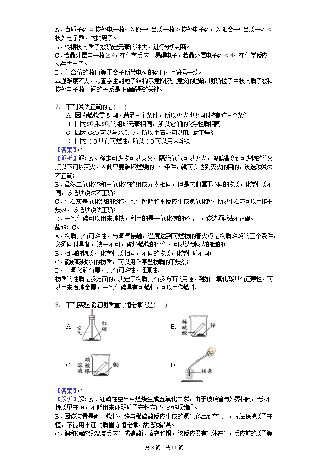 所属专辑: 《2018-2019学年九年级上期末化学试卷》专辑
