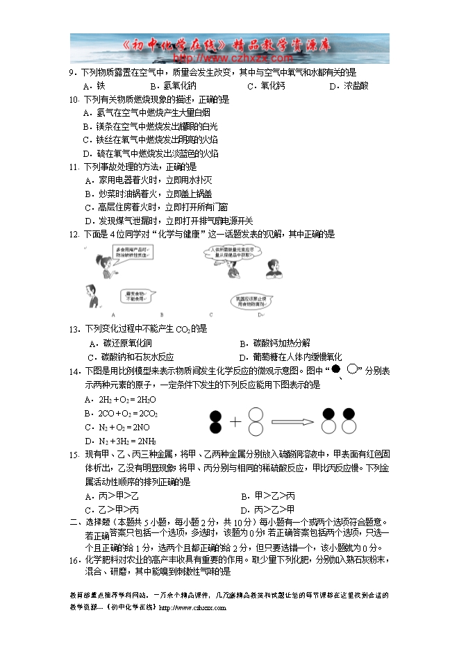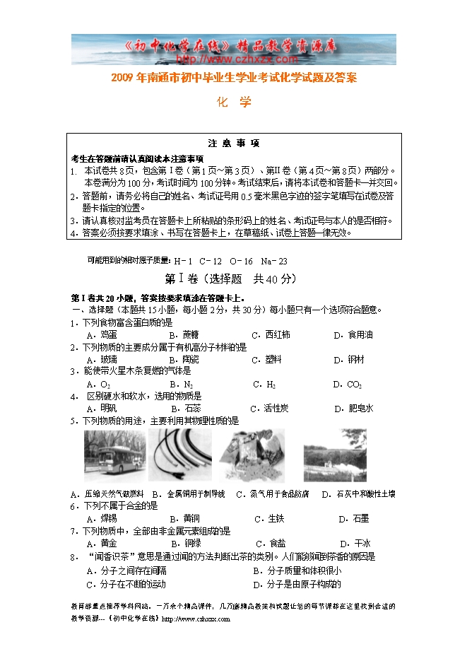 - 上一份试卷:2009年江西省南昌市初中毕业生学业考试化学试题及答案