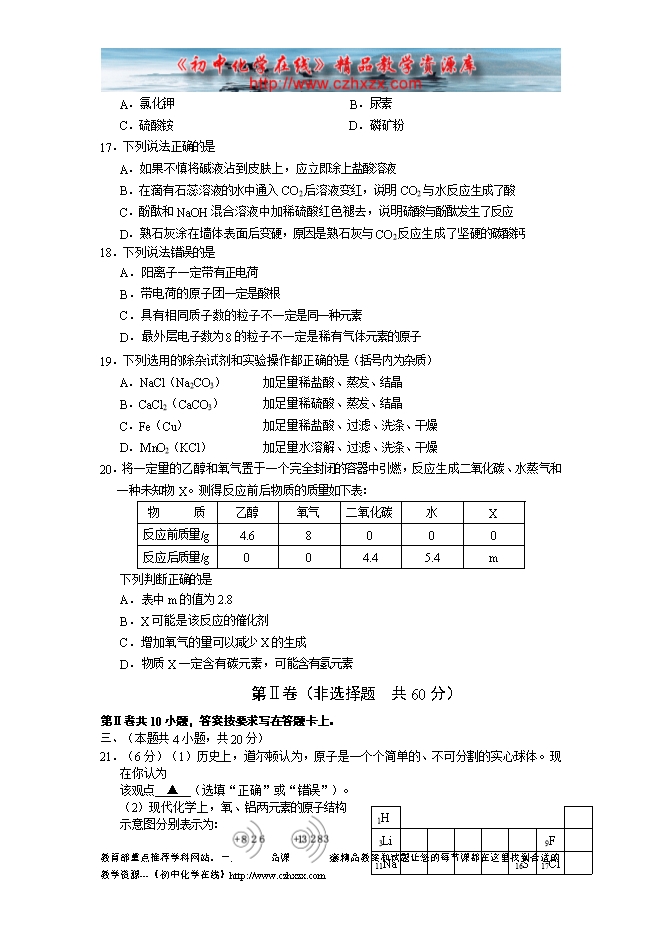 - 下一份试卷:2009年山东省东营市九年级化学中考试题及答案