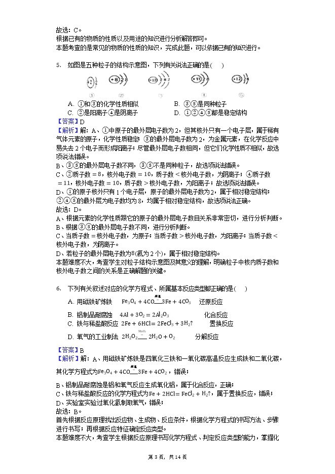 所属专辑: 《2018-2019学年九年级上期末化学试卷》专辑