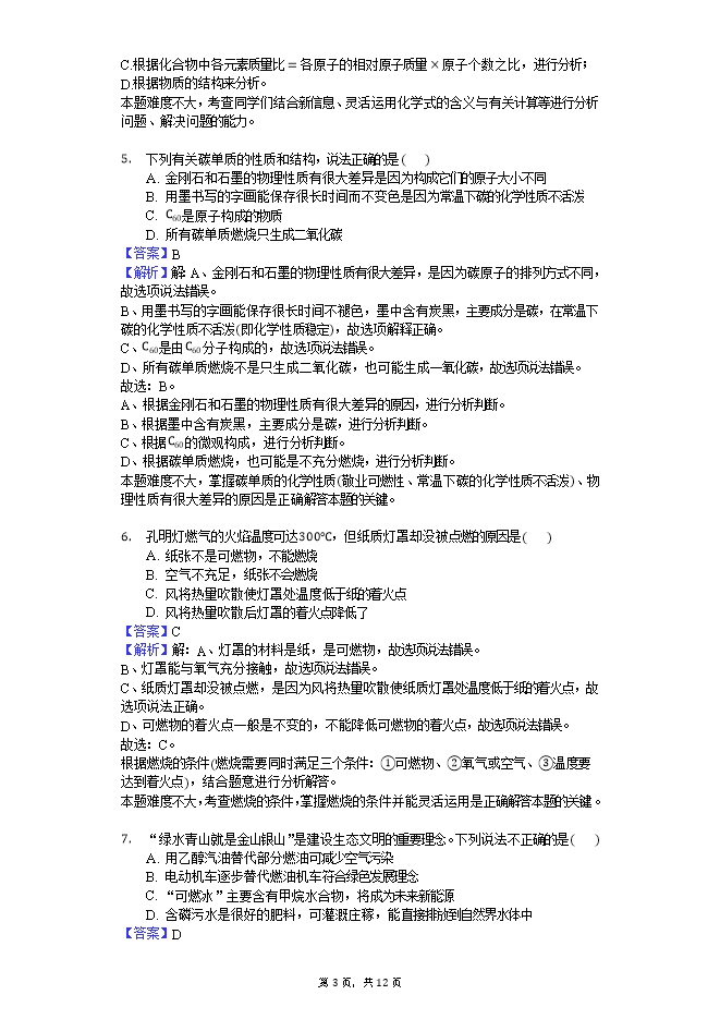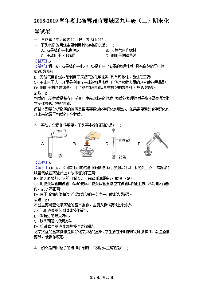 【内容简介】湖北省鄂州市鄂城区2018-2019学年九年级(上)期末化学试卷(word版含答案解析)