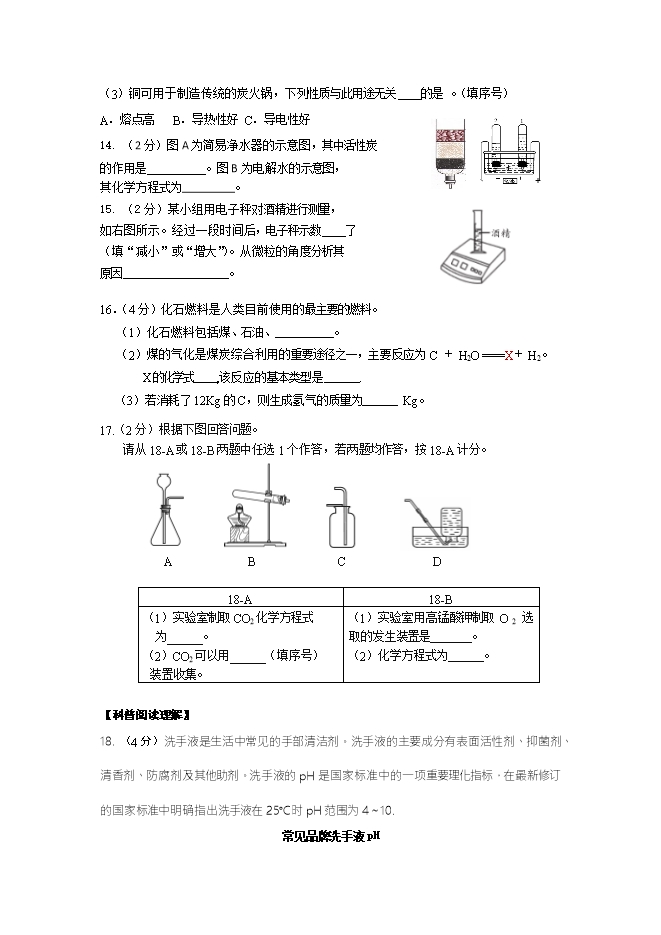 【内容简介】北京燕山区2018-2019学年度初三化学上学期期末试卷(word版含答案)