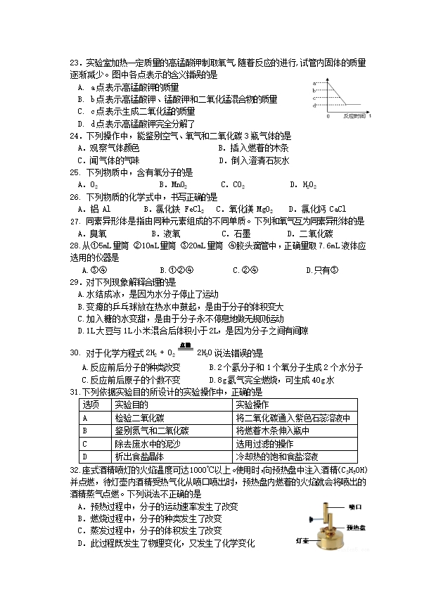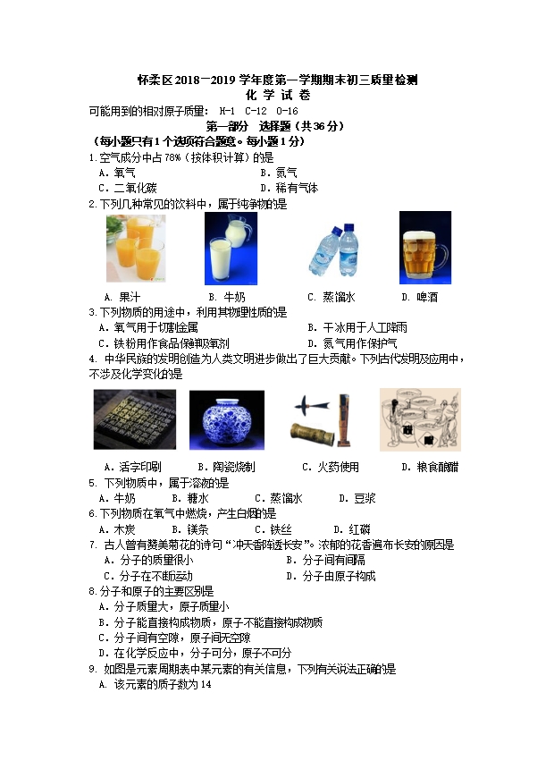 【内容简介】北京怀柔区2018-2019学年度初三化学上学期期末试卷(word版含答案)