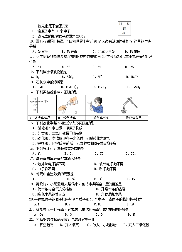北京怀柔区2018-2019学年度初三化学上学期期末试卷(word版含答案)