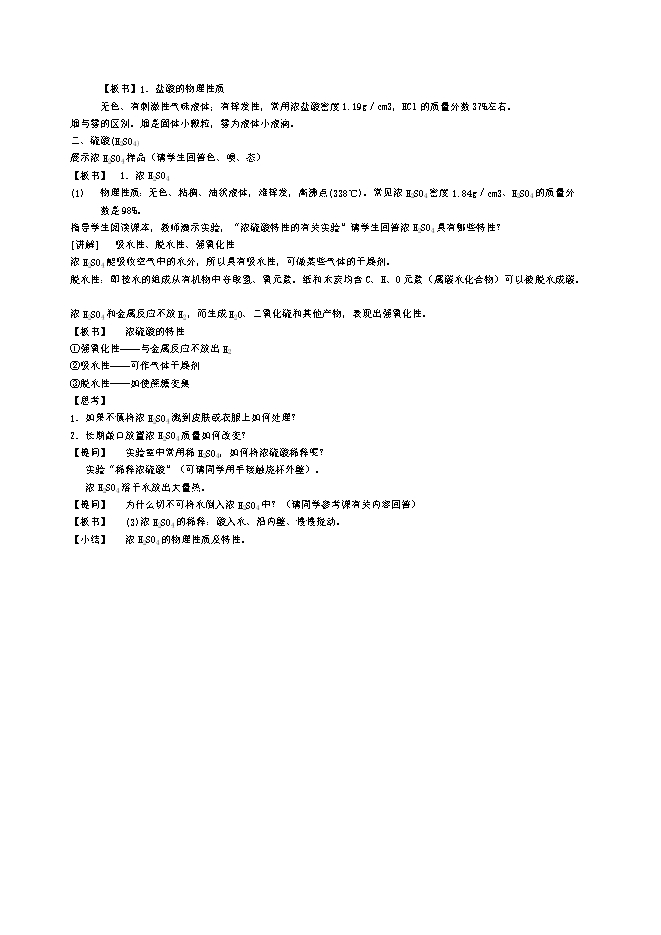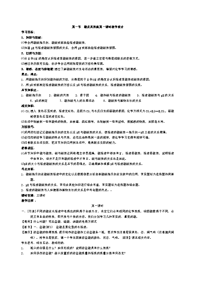 【内容简介】鲁教版九年级化学下册《7.1 酸及其性质(第一课时)》教学设计