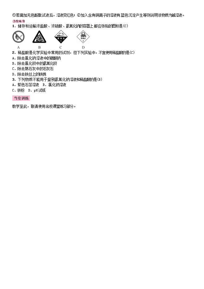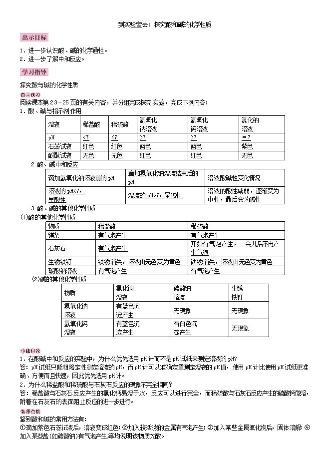 鲁教版九年级化学下册《7.5到实验室去:探究酸和碱的化学性质》教学设计