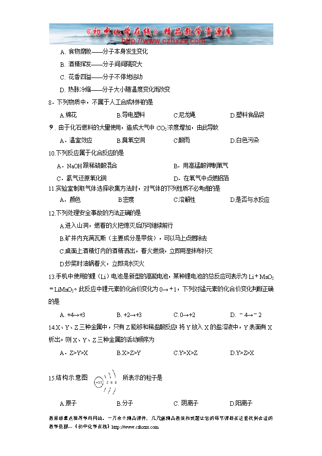 - 下一份试卷:2009年烟台市初中毕业生学业考试化学试题及答案