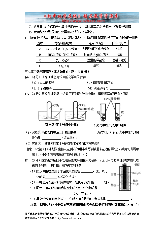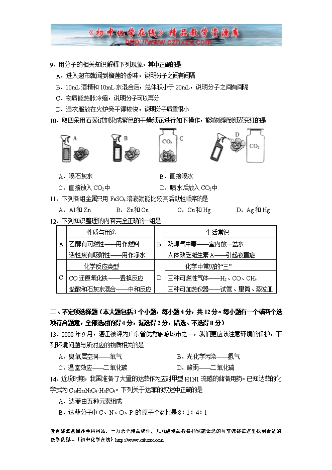 - 下一份试卷:2009年肇庆市初中毕业生学业考试化学试题及答案