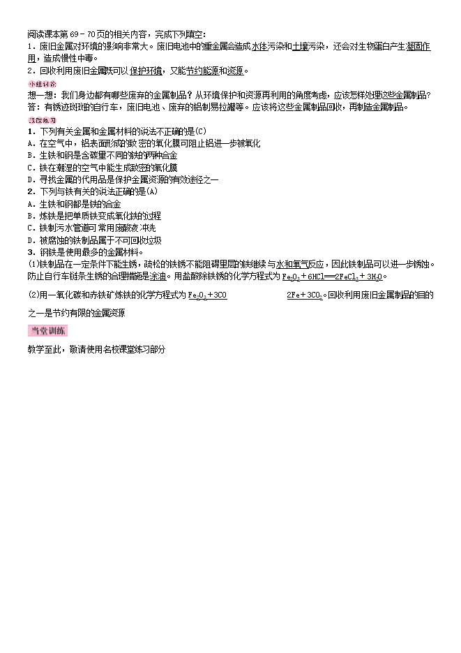 鲁教版九年级化学下册《9.3钢铁的锈蚀与防护》教学设计