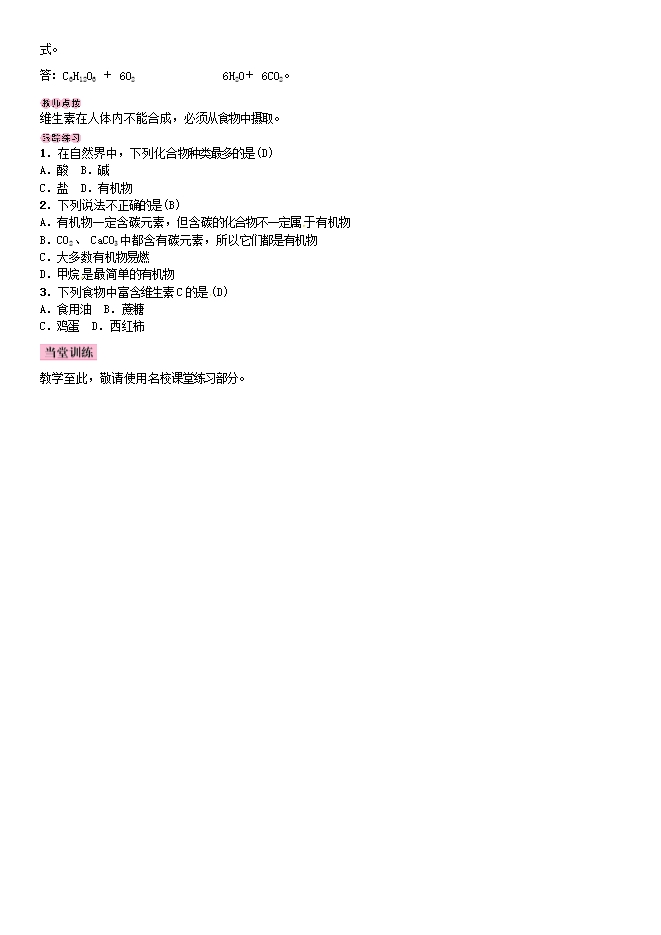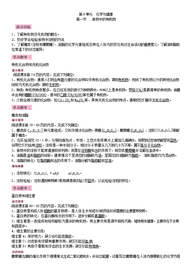 【内容简介】鲁教版九年级化学下册《10.1食物中的有机物》教学设计