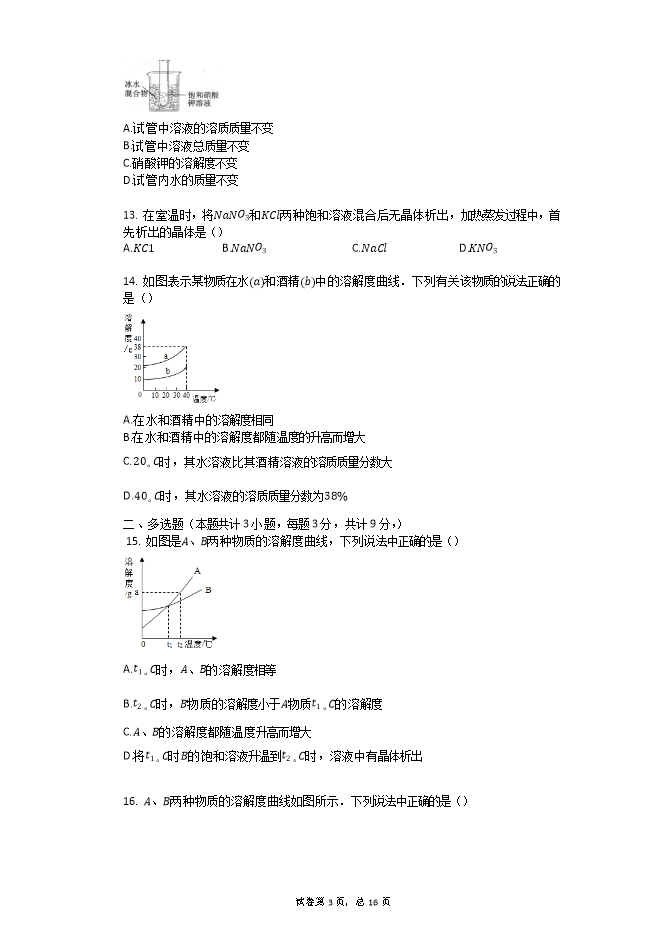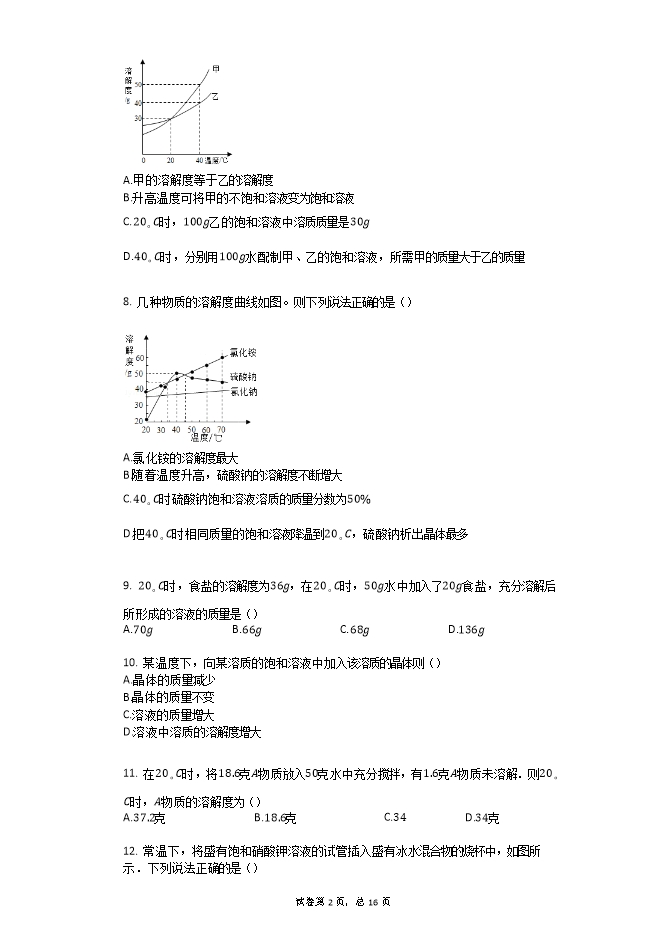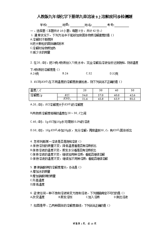 【内容简介】人教版九年级化学下册《9.2_溶解度》同步检测题(word版含答案解析)