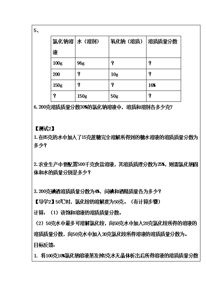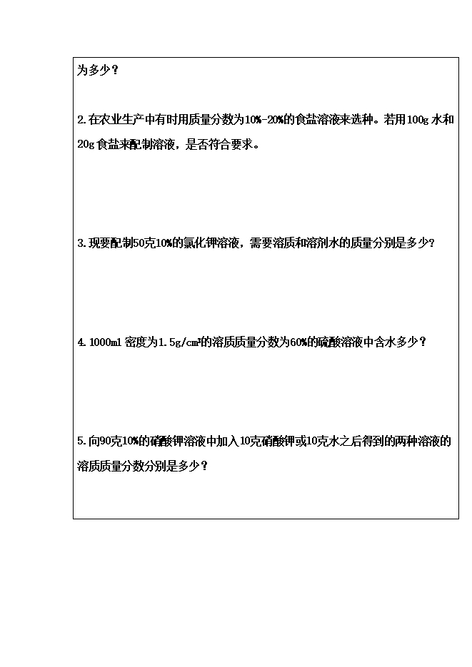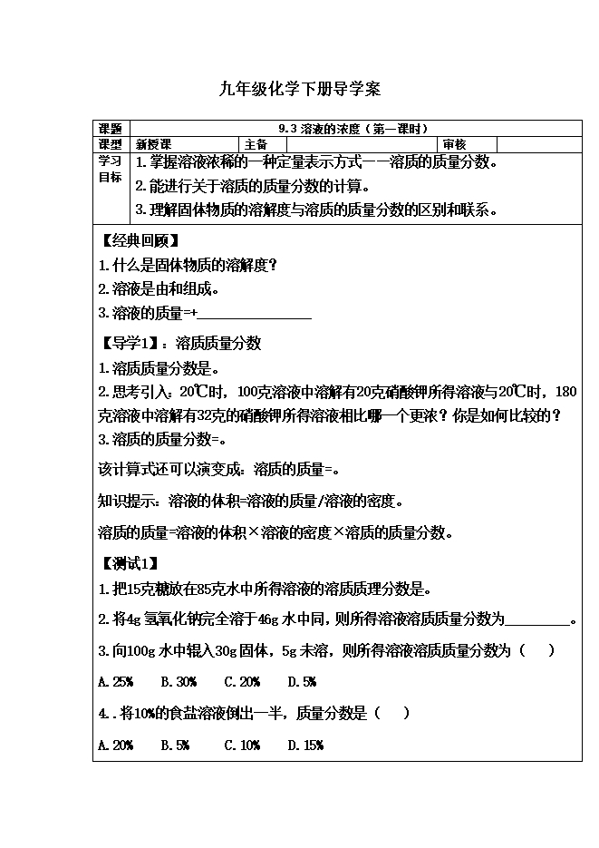 【内容简介】人教版九年级化学下册《9.3溶液的浓度(第一课时)》导学案 (word版无答案)
