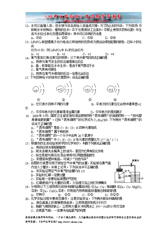 - 下一份试卷:2009年连云港市初中毕业生学业考试化学试题及答案