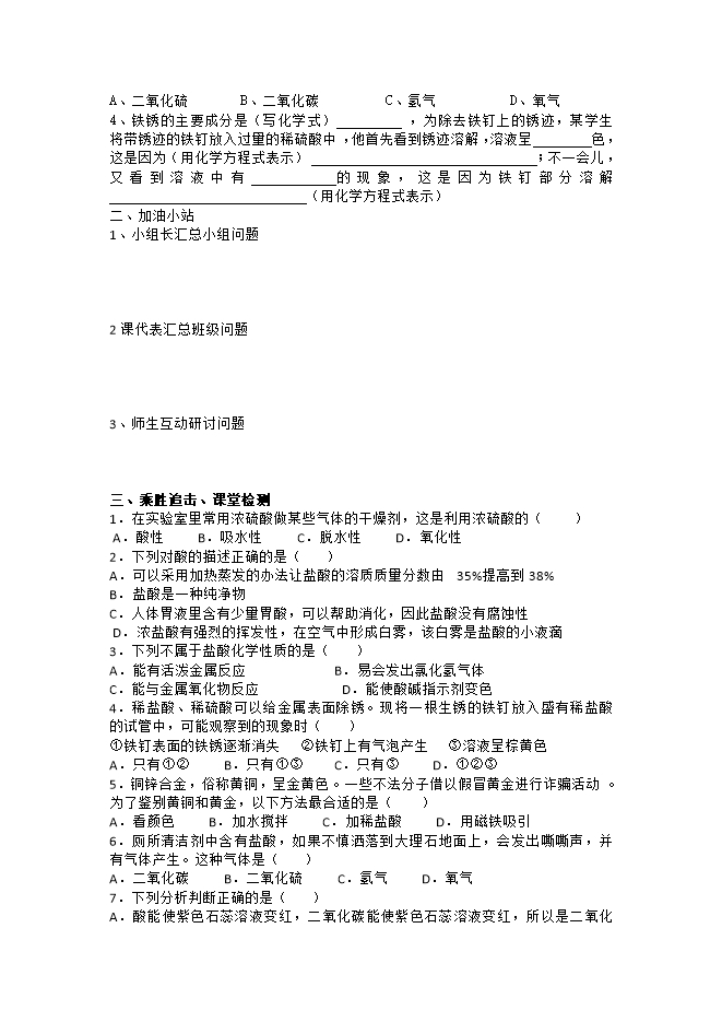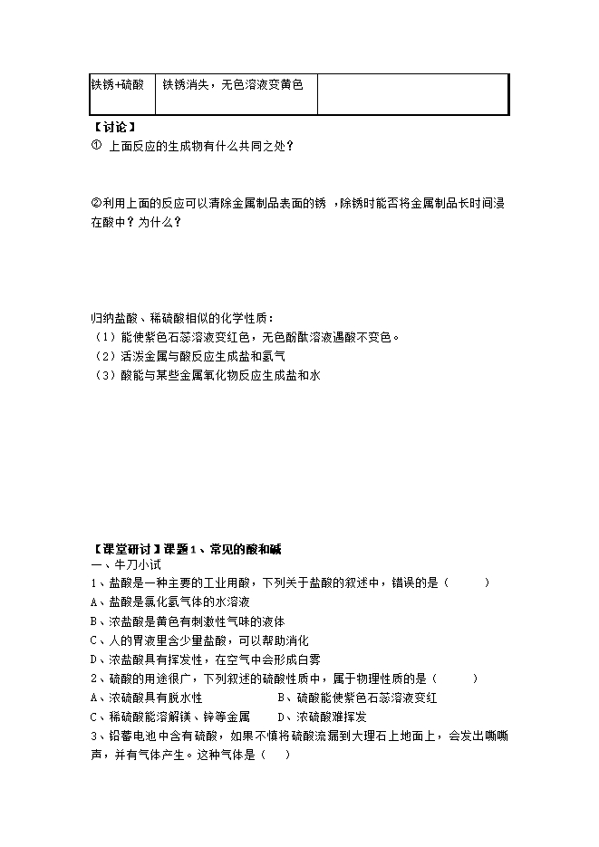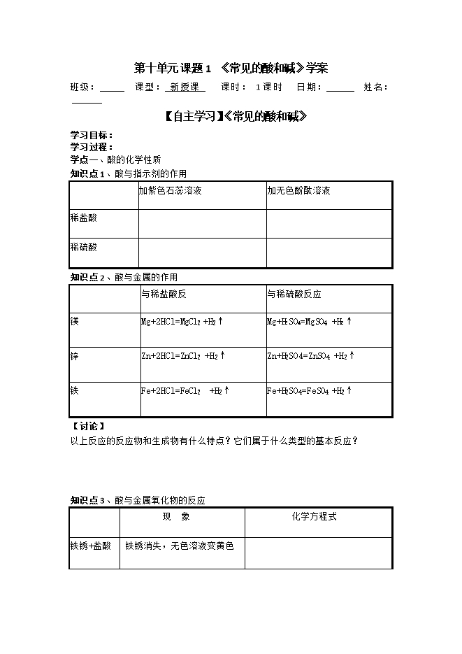 【内容简介】人教版九年级化学下册《10.1常见的酸和碱》导学案 1(word版无答案)