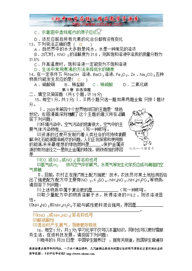 - 下一份试卷:2009年苏州市初中毕业生学业考试化学试题及答案