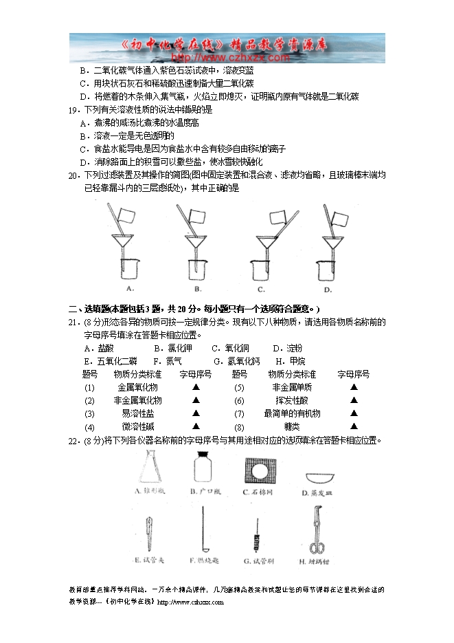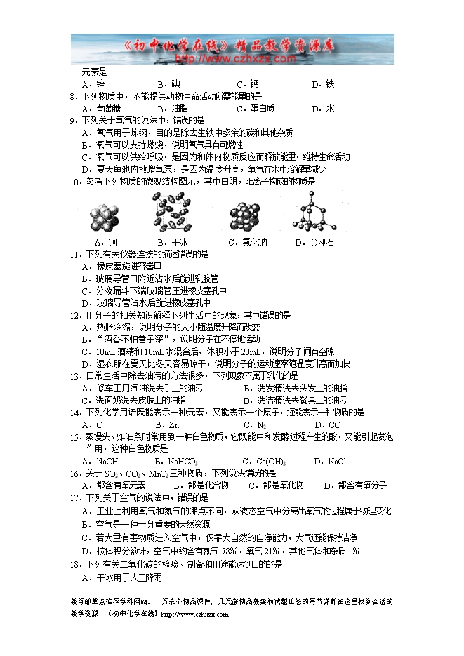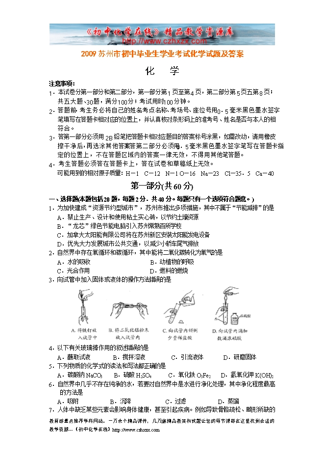 2009年苏州市初中毕业生学业考试化学试题及答案
