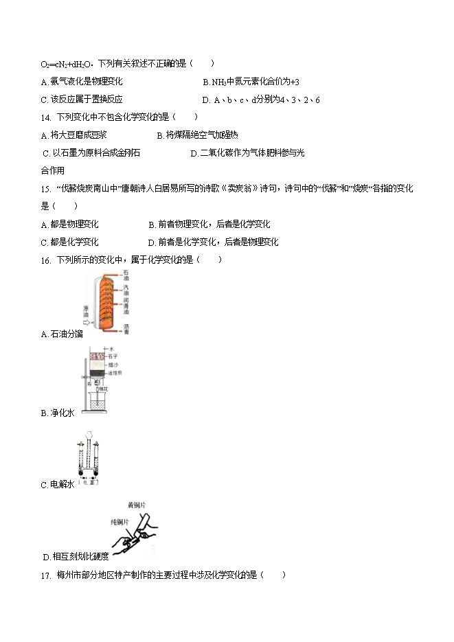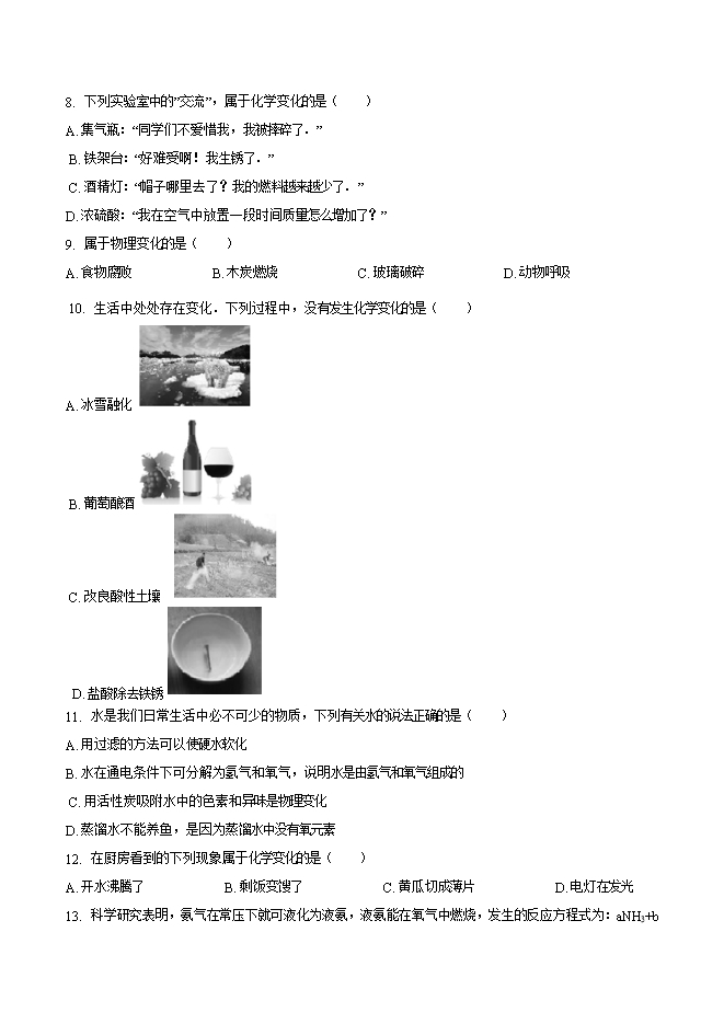 【内容简介】2019年九年级化学中考考点突破考点01 物理变化与化学变化(原卷版)