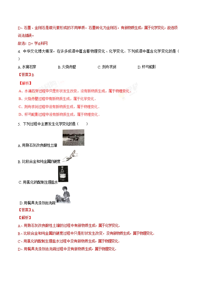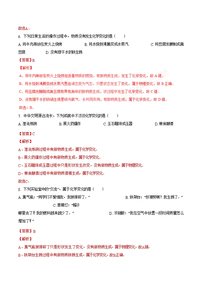 【内容简介】2019年九年级化学中考考点突破考点01 物理变化与化学变化(解析版)