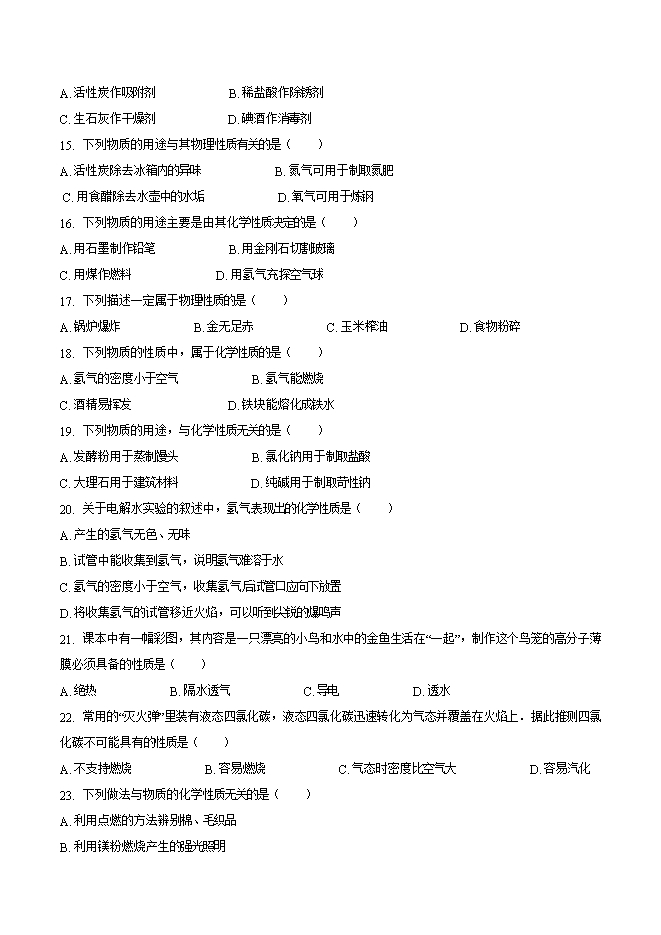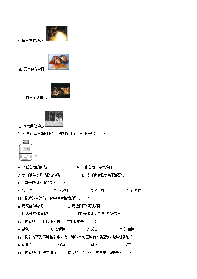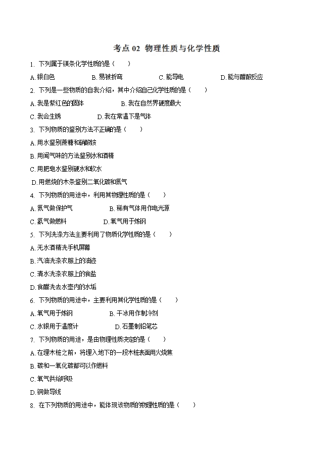 【内容简介】2019年九年级化学中考考点突破考点02 物理性质与化学性质(原卷版)