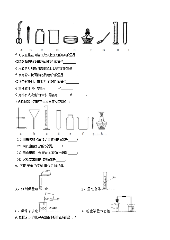 【内容简介】2019年九年级化学中考考点突破考点03 常见仪器及使用(原卷版)