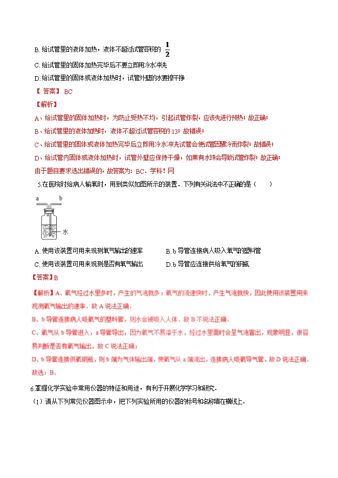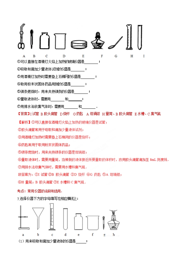 【内容简介】2019年九年级化学中考考点突破考点03 常见仪器及使用(解析版)